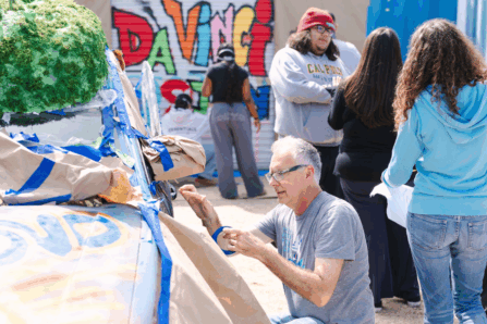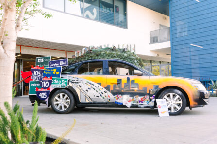 The students’ Art Car, California Dream’n, tells two sides of Los Angeles: the driver’s side captures Hollywood glamour—beaches, sun, sports, fame—while the passenger side reflects everyday life—community, diversity, food, street art, and resilience. Together, it explores the gap between how L.A. is imagined and how it’s actually lived.