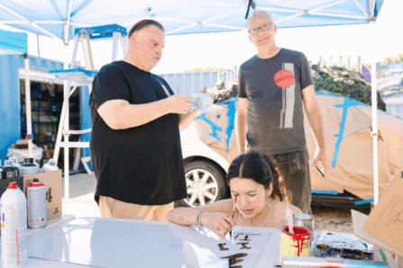 “I’ve mentored students before, but not quite this in-depth or on such a grand scale. It’s been a lot of fun, and really exciting to see their ideas come to life. I try to offer professional advice and guidance on materials,” said Benedict. He also leveraged his connections to bring in other artist-mentors, including Dave Shuten from Discovery Channel’s Car Kings and graffiti artist Bobby Z. Rodriguez.