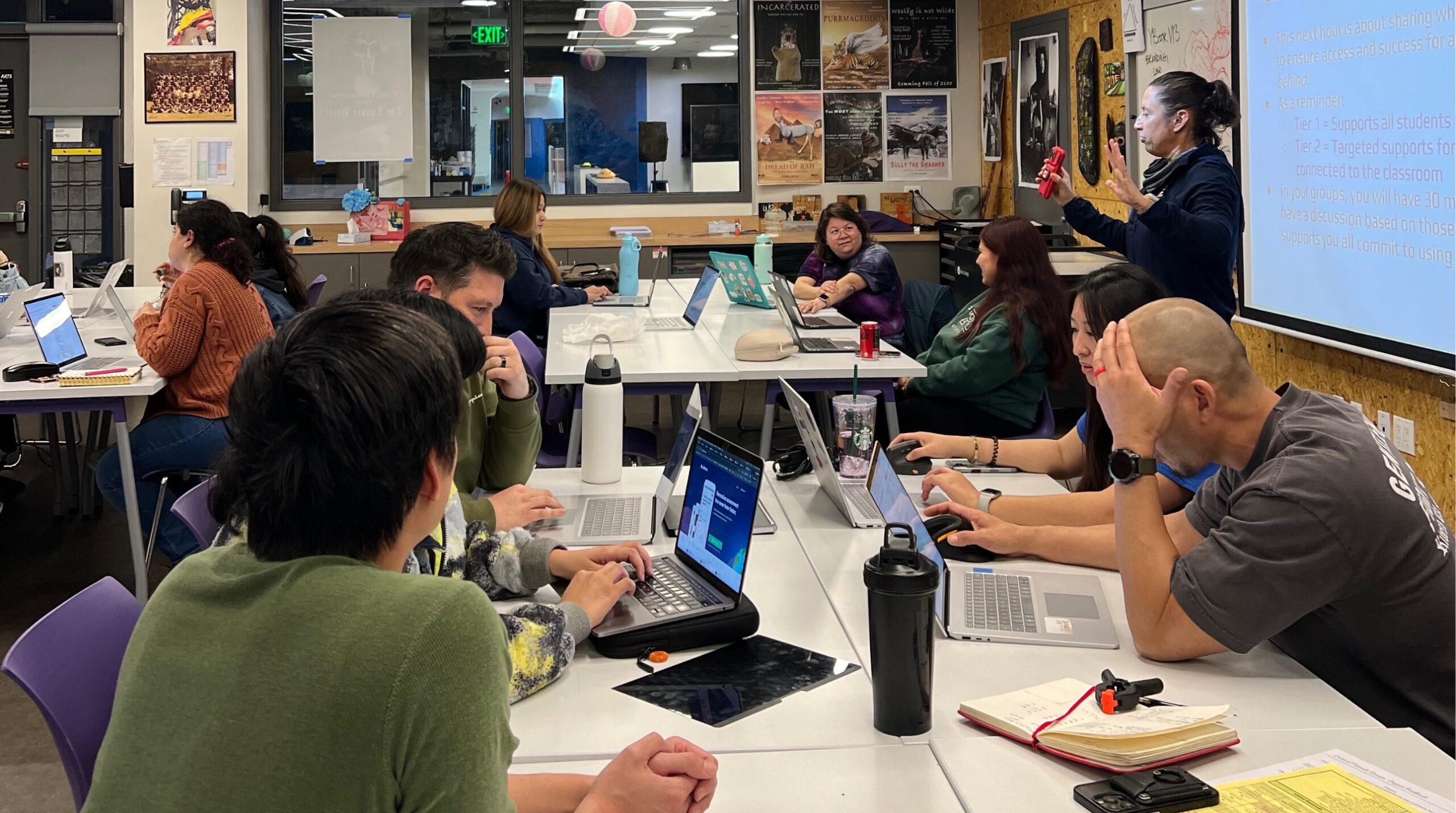Together, teams reflected on how projects are intentionally designed so all students can access and engage with content, and how consistent instructional strategies support diverse learners, including language development, reading, executive functioning, and engagement. Educators examined the supports and accommodations already built into daily instruction, identified where students may need additional scaffolding, and shared strategies to ensure students know what to do next when they are struggling—without waiting for permission.