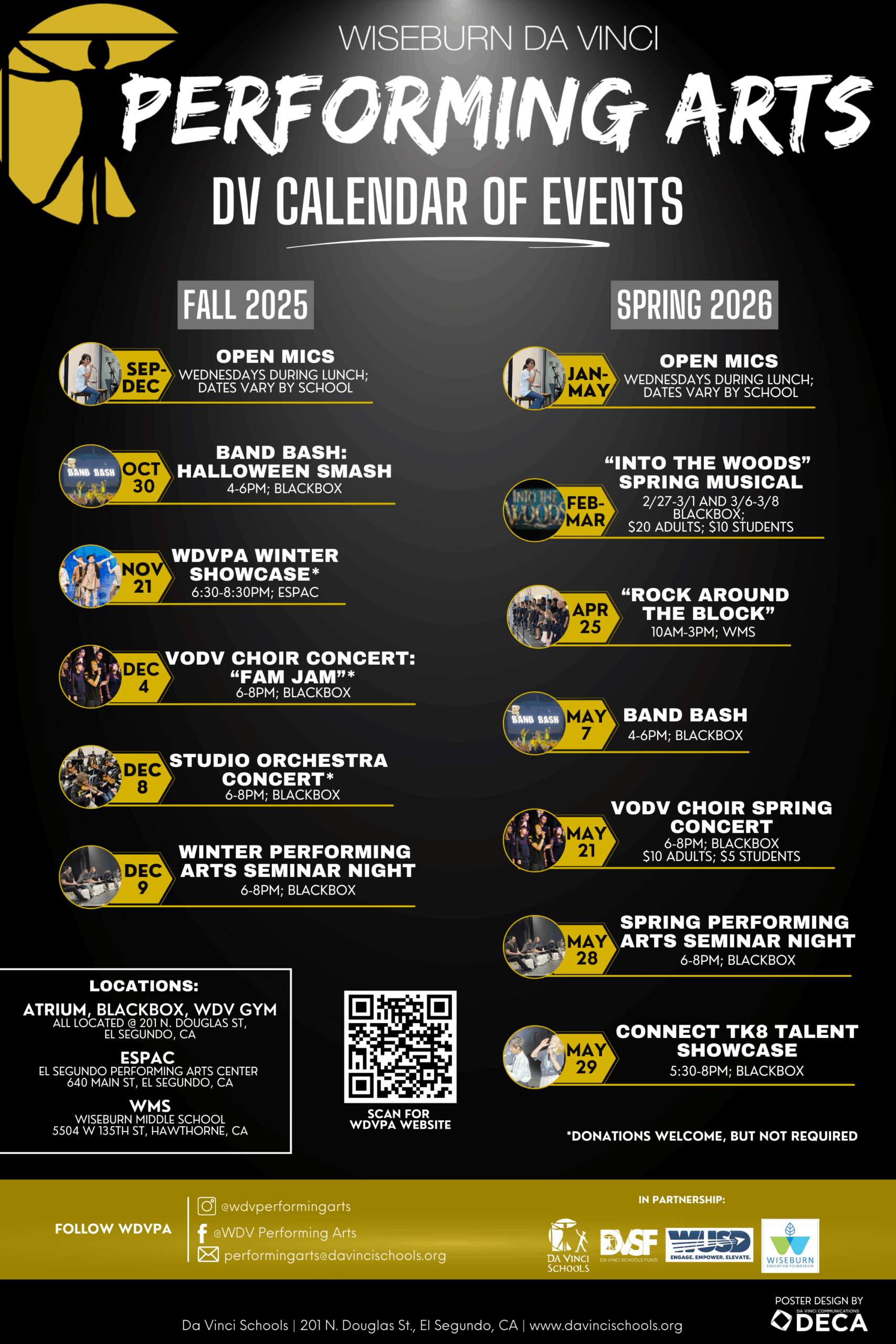 As part of our continuing expansion of the Wiseburn Da Vinci Performing Arts program at Da Vinci, we're excited that all students in grades TK-12 have access to Music and Theatre classes and ensemble experiences.
