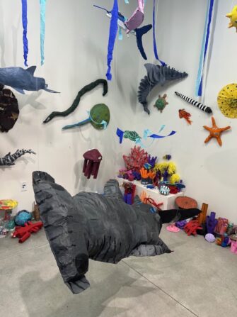 Creativity played a central role in the project. Students created one-pagers outlining actionable solutions and collaborated on a 3D coral reef installation made entirely from recycled materials donated by families, including paper towel rolls, newspapers, and plastic bottles—demonstrating both environmental responsibility and creative problem-solving.