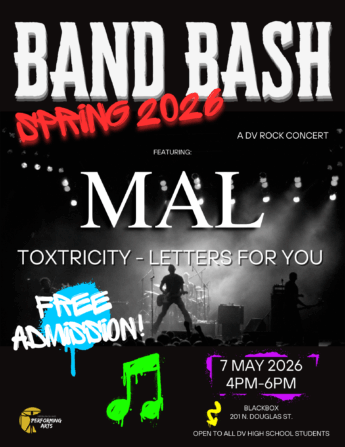 Get ready for Band Bash, Spring 2026! The one-of-a-kind, high-energy, student-run rock concert featuring Da Vinci’s own student bands is back! Taking place on Thursday, May 7th from 4–6pm in the Black Box Theater, Band Bash is all about live music, creativity, and giving students a chance to own the stage.
